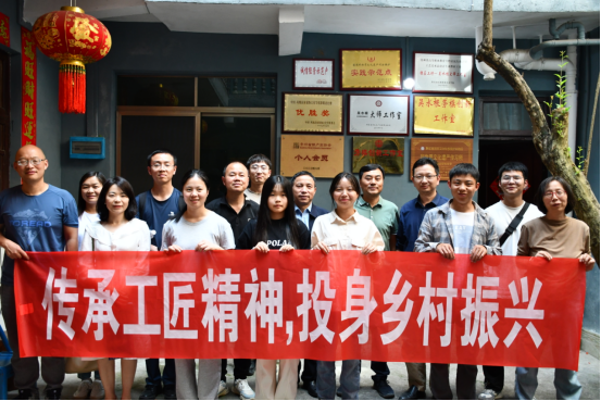最后,胡张林带领公司师生党员与施洞吴家银匠第八代传人、国家级非物质文化遗产项目银饰锻制技艺(苗族银饰锻制技艺)代表性传承人吴水根座谈,参观了其工作室,深入了解了吴水根充分发挥党员先锋模范作用,给村民传授银饰手艺,带动村民脱贫致富的事迹。吴水根四十年如一日坚守传承,朴实的劳动和勇于创新的工匠精神深深感染了师生党员,也坚定了师生党员充分发挥自己才能、投身于乡村振兴的决心。