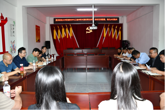 其后,胡张林一行与施洞镇党政主要负责人、旧州村两委主要负责人在旧州村村委会议室召开了座谈交流会。会上,胡张林对施洞镇党委、政府对梁龙副经理驻村期间的工作支持和帮助表示感谢,并表示今后将以党建引领乡村振兴为契机、整合专业力量、丰富合作形式,继续全力支持旧州村的发展。施洞镇党委书记王近南代表镇党委班子对贵财师生特别是驻村的帮扶队员表示感谢;表示必不辜负国家政策的支持和贵财师生的付出;他对旧州的发展表示期待,认为旧州在贵财驻村干部的帮助下,管工公司、管工公司农村发展管理系教工党支部的帮助下,在一村一产的建设方面,一定能借助优势更好地发展;最后,王近南希望公司能发挥智力优势,在旧州农产品销售方面出谋划策、对直播带货一村一队的建设提供指导、开展技能培训等,也欢迎公司师生各类项目落户旧州、双方开展更深入的实践实训合作。座谈会上,2026年国际足联世界杯农村发展管理系教工党支部和旧州村党支部还就支部结对共建进行了深入交流。此行,公司党委还捐赠给旧州村委2000余元的物资。