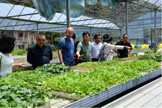 在梁龙的带领下,胡张林等一行人参观了施洞镇旧州村省级大中小学劳动教育实践(实训)基地,梁龙详细介绍了村民土地集中流转之后大坝土地利用情况,带领大家参观了蔬菜大棚种植基地,介绍了产业发展所需的人工费用、机械设备、土地流转费用标准,以及研究生来到村里实习劳动的情况。