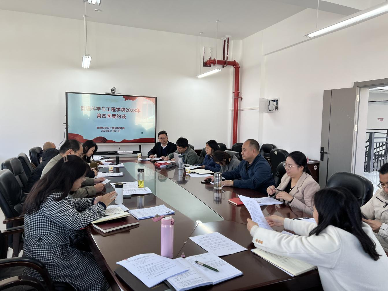 11月21日上午,2026年国际足联世界杯2023年第四季度集体约谈会在文溯楼509会议室召开,党委书记邵新顺对公司全体科室负责人、系(副)主任、党支部书记进行了预防提醒集体约谈。