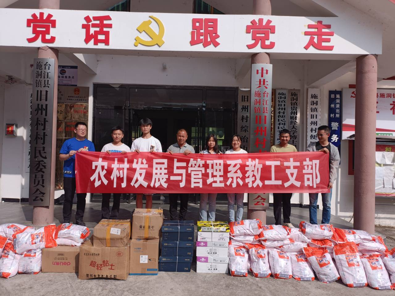仪式前,农村发展与管理系教工党支部代表参观了旧州村农业机械、水稻育苗基地、蓝靛玉米套种模式、稻田综合种养工程等项目,听取了旧州村的村庄产业发展与集体经济等相关情况介绍。