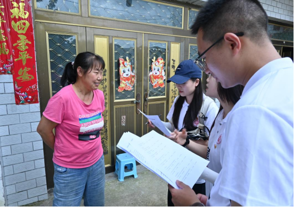 为了解村民眼中实施乡村振兴战略为村庄所带来的变化,实践队队员走村入户,对兴诚村村民开展了一场调研活动。