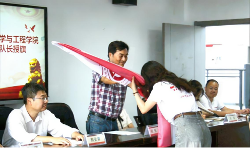 胡张林书记和郭长睿经理分别为暑期“三下乡”实践队和“千乡万村”实践队授旗。