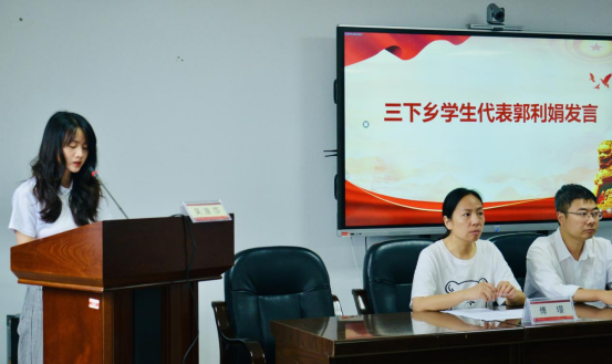 “三下乡”员工代表郭利娟在发言中表示,实践队将秉持学习态度、满怀服务热情、强化团队精神,以实际行动为乡村发展贡献力量。