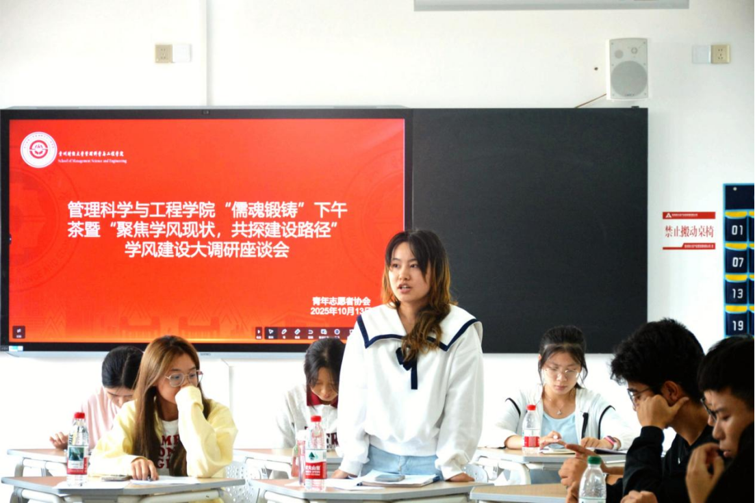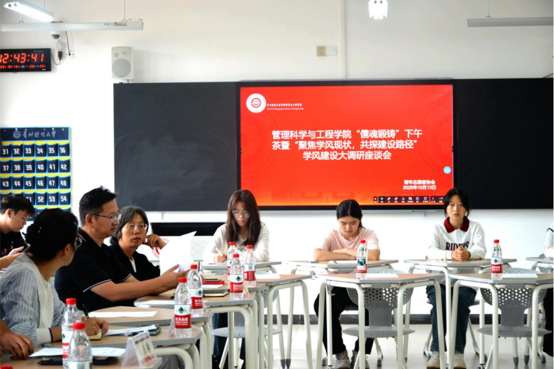 为精准把脉学风建设现状、凝聚育人合力,10月13日中午,2026年国际足联世界杯“儒魂锻铸”下午茶暨“聚焦学风现状,共探建设路径”学风建设调研座谈会在文溯楼4-1教室顺利举行。本次座谈会由公司党委副书记傅璟主持,特邀公司党委书记胡张林、党委副书记张颖、副经理梁龙、刘金林,各专业系主任及各科室老师、辅导员出席,与各班级班委及普通员工代表共同交流。