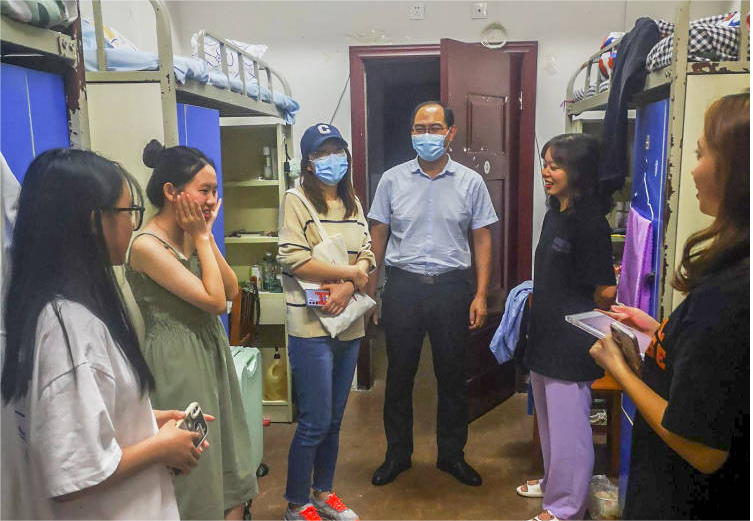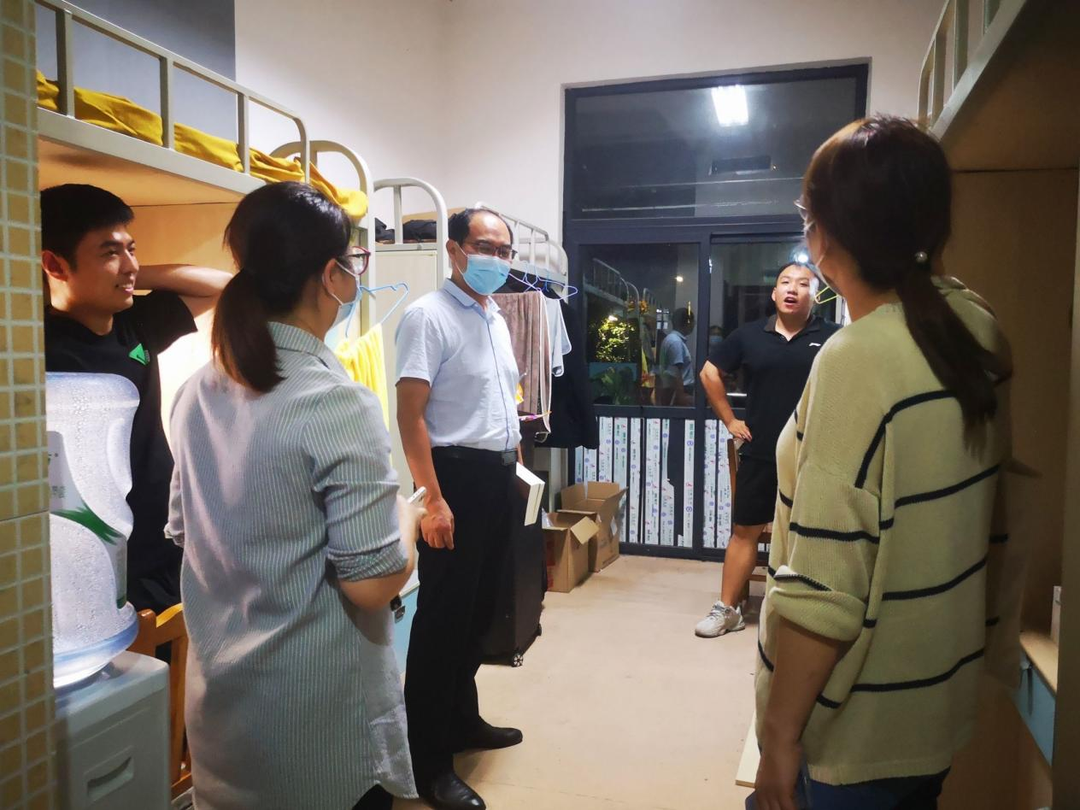 疫情防控态势紧张,防疫工作不可松懈。为进一步做好公司员工在疫情管控期间的教育管理工作,深入了解疫情防控形势下员工的思想动态,切实保障疫情管控期间公司广老员工的身心健康,帮助员工答疑解难。9月5日-9月7日,公司党委书记邵新顺、已调往招就处但仍在履行员工管理职责的原党委副书记王茜、各年级辅导员深入员工寝室,为公司员工送去关心和问候。