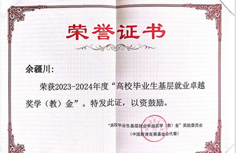 万元强村富民资金用于村级金香蜜瓜、肉牛产业发展。共撰写宣传报道120余篇在各大主流媒体报道。先后被评为“全省脱贫攻坚优秀共产党员”“思南县先进工作者”,他组织开展的“春晖行动·雏雁计划”志愿服务项目被团中央青年发展部评为“2021年社会实践活动优秀品牌项目”,获2023-2024年度“高校毕业生基层就业卓越奖学金”。