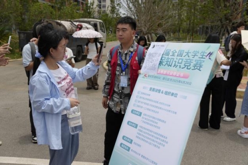 活动现场,众多师生驻足观看展播视频,参与互动游戏。现场志愿者同步进行知识讲解,帮助深化环保认知。通过“线上+线下” 结合的方式,师生们积极参与环保知识竞答,内容涵盖生态保护、污染防治等领域,全面检验员工环保知识储备。