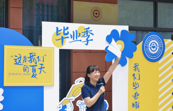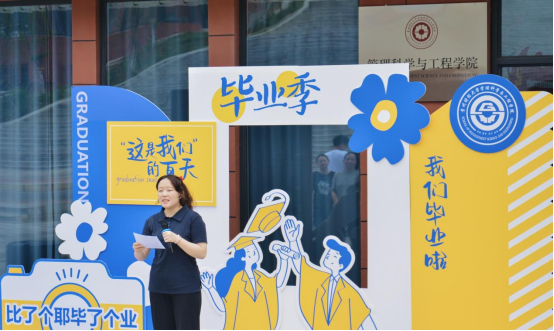 辅导员代表陈佳莲表示了对毕业生的深切牵挂与美好期许。她表示,四年的时光如白驹过隙,还记得初见同学们时,大家眼中满是对老员工活的憧憬与期待;这四年里,见证了同学们从青涩走向成熟,从迷茫变得坚定,点点滴滴的回忆,都如同璀璨星辰,镶嵌在记忆的天空,希望同学们的未来一路生花。