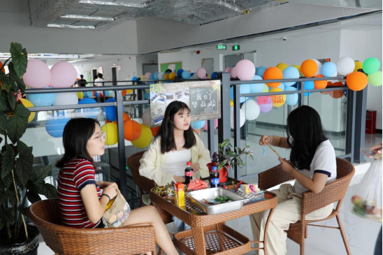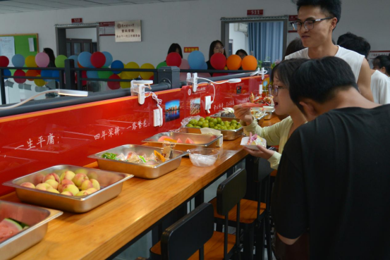 活动现场精心布置,精心点缀的暖黄色灯光温柔地洒落,映照着长桌上琳琅满目的餐点,新鲜的水果切块晶莹剔透,精致的甜点散发着诱人的光泽,还有那特意准备的、带着地方特色的家乡小食炸土豆条、酥肉。没有奢华的排场,却有满满的用心,像极了妈妈为即将远行的孩子准备的饯行饭,每一口都饱含着祝福与牵挂。
