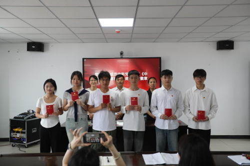 仪式在庄严的中华人民共和国国歌中拉开帷幕。党委副书记傅璟宣读党委关于接收新党员的批复文件后,党委班子成员为新党员颁发《中国共产党章程》并佩戴党员徽章。